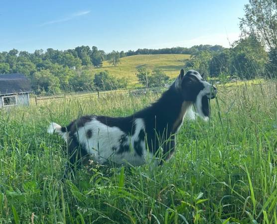 He’s name is Taco, he was a bottle baby so he’s very friendly and tame, I’m sad to sell him but I’m keeping some of Taco’s daughters so I have to get rid of him, you can lead him on a leash, he was disbudded.
