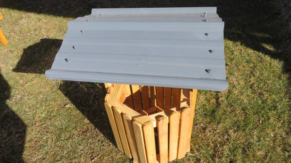 It has a metal roof on it. We supply a board with it if anyone wants to throw money in it?