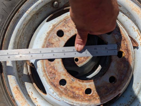 These are 1-ton rims off of GM in dually rims. I give the the bolt patterns in pictures three three 0 two 8 four one 2 eight 8 leave me a text only or email and I will get back to you pertaining to what you're interested in 125 each they have about 60% of tread left on the tires in that neighborhood