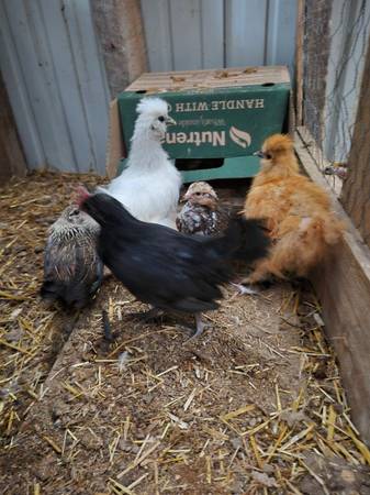I have 2 silkies 1 white and 1 Buff And 3 bantam chicks I believe there all pullets. 4 weeks old fully feathered and off heat. $5 each or all 5 for $20 Pickup Scio Ohio, 43988