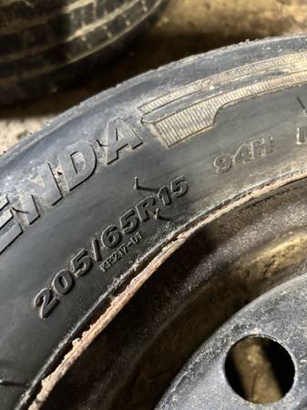 Good used car tires. I had them on my Toyota Camry. Rims, hub caps and all come with. Also have about 12 lug nuts to go with. Good shape!!